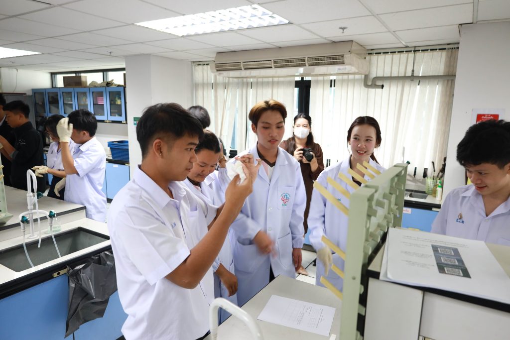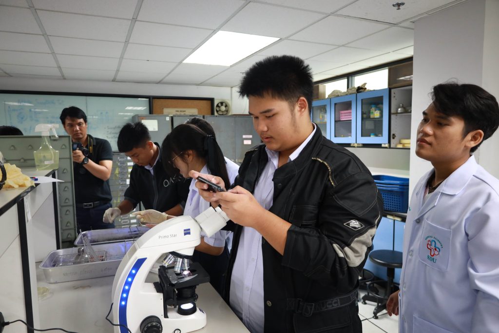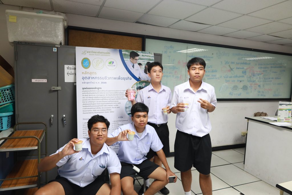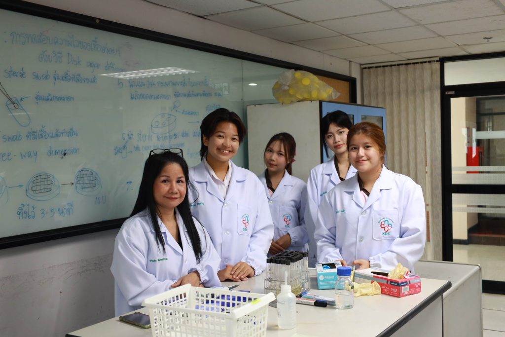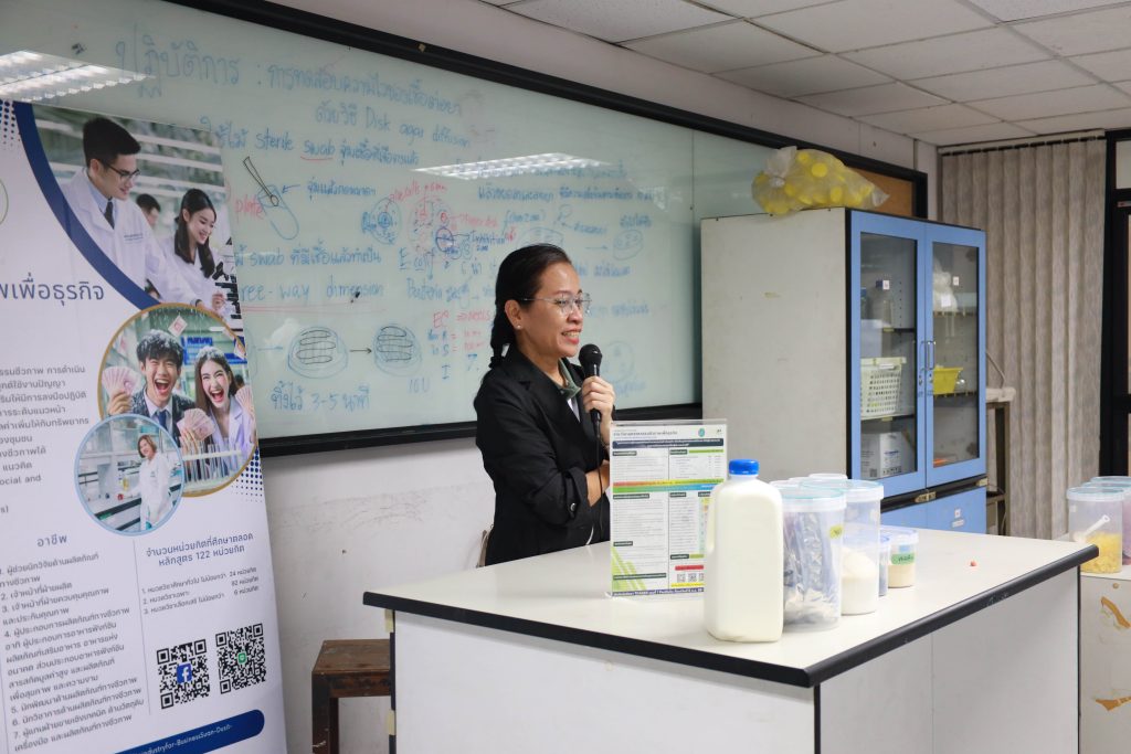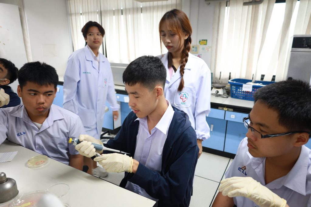 รศ.ดร.สุระสิทธิ์ ทรงม้า รองคณบดีคณะวิทยาศาสตร์และเทคโนโลยีและ ผศ.ดร.อุดมศักดิ์ กิจทวี ผู้ช่วยคณบดี กล่าวเปิดงาน “การอบรมเชิงปฏิบัติการ ด้านวิทยาศาสตร์ การแพทย์ อุตสาหกรรมชีวภาพและปัญญาประดิษฐ์” และมีการฝึกปฎิบัติการด้านการทดสอบความไวของเชื้อต่อยาด้วยวิธี Disk agar diffusion method และการย้อมสีแกรมของแบคทีเรีย การผลิตโยเกิร์ตโฮมเมดและมาตรฐานการผลิตผลิตภัณฑ์ชีวภาพ สำหรับนักเรียนโรงเรียนสตรีวิทยา 2 ในพระราชูปถัมภ์ฯ กรุงเทพมหานคร จำนวน 39 คน วันที่ 18 พฤศจิกายน 2568 ณ Co-Working Space ชั้น 5 ศูนย์วิทยาศาสตร์ฯ ถนนสิรินธร มหาวิทยาลัยสวนดุสิต กรุงเทพฯ