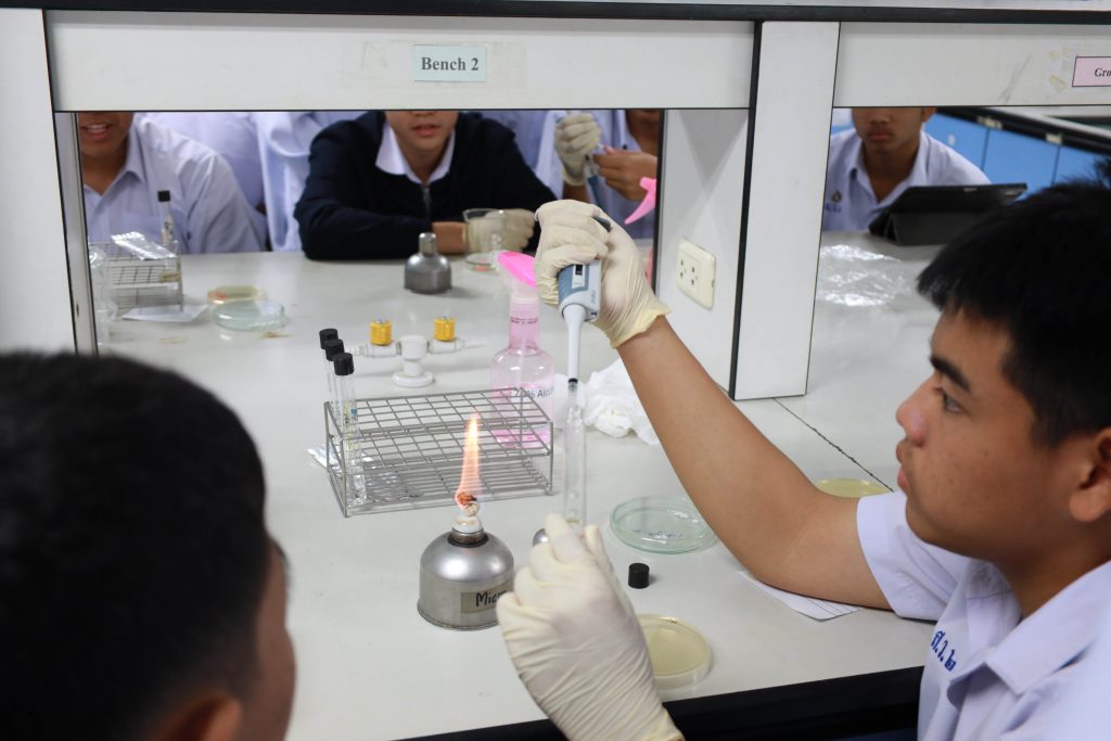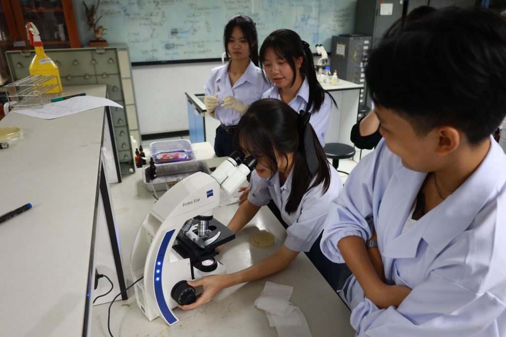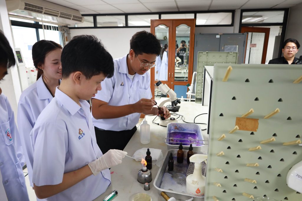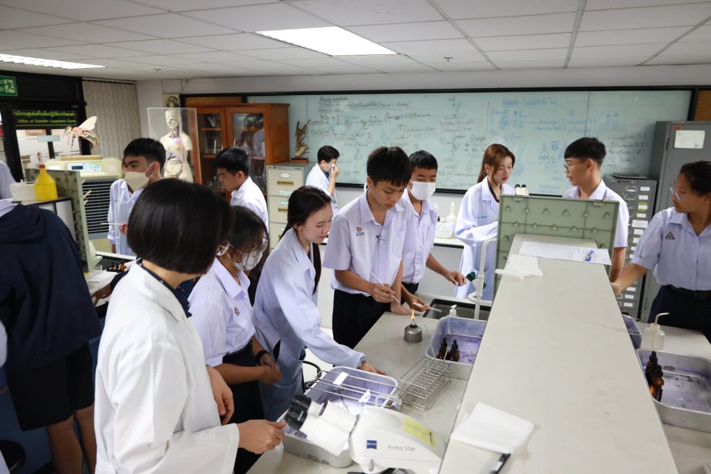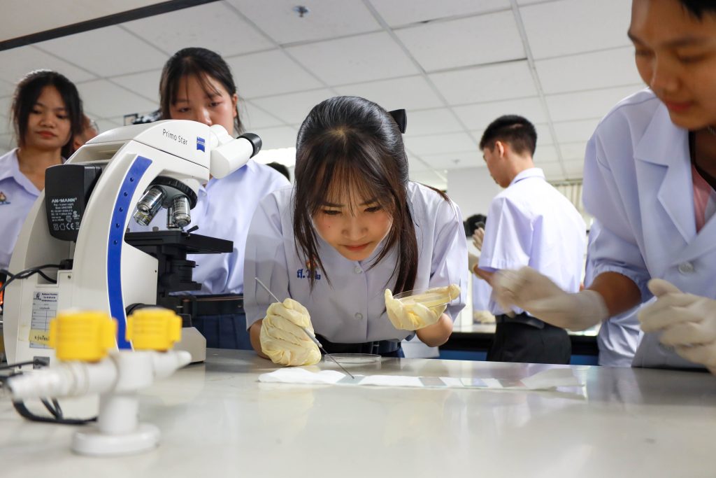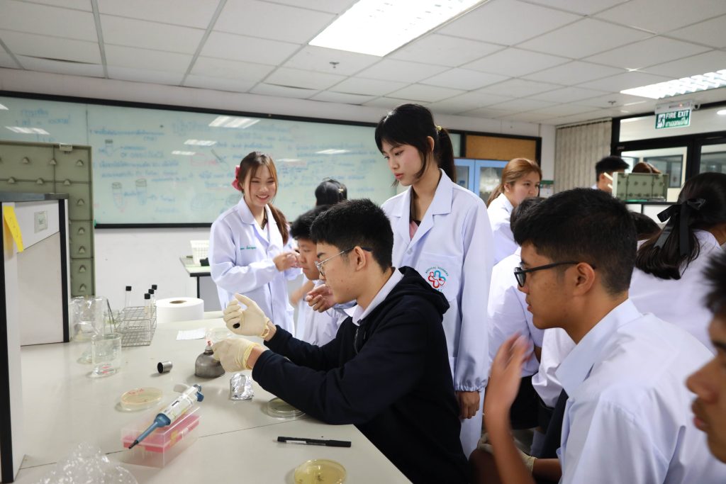 รศ.ดร.สุระสิทธิ์ ทรงม้า รองคณบดีคณะวิทยาศาสตร์และเทคโนโลยีและ ผศ.ดร.อุดมศักดิ์ กิจทวี ผู้ช่วยคณบดี กล่าวเปิดงาน “การอบรมเชิงปฏิบัติการ ด้านวิทยาศาสตร์ การแพทย์ อุตสาหกรรมชีวภาพและปัญญาประดิษฐ์” และมีการฝึกปฎิบัติการด้านการทดสอบความไวของเชื้อต่อยาด้วยวิธี Disk agar diffusion method และการย้อมสีแกรมของแบคทีเรีย การผลิตโยเกิร์ตโฮมเมดและมาตรฐานการผลิตผลิตภัณฑ์ชีวภาพ สำหรับนักเรียนโรงเรียนสตรีวิทยา 2 ในพระราชูปถัมภ์ฯ กรุงเทพมหานคร จำนวน 39 คน วันที่ 18 พฤศจิกายน 2568 ณ Co-Working Space ชั้น 5 ศูนย์วิทยาศาสตร์ฯ ถนนสิรินธร มหาวิทยาลัยสวนดุสิต กรุงเทพฯ