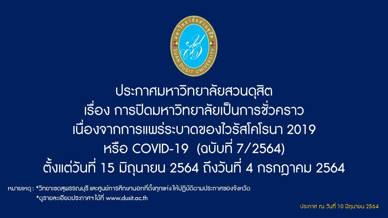 ประกาศมหาวิทยาลัยสวนดุสิต เรื่อง การปิดมหาวิทยาลัยเป็นการชั่วคราว เนื่องจากการแพร่ระบาดของไวรัสโคโรนา 2019 หรือ COVID-19 (ฉบับที่ 7/2564)Jun 10, 2021Kasma Sumuangข่าวประชาสัมพันธ์ ประกาศมหาวิทยาลัยสวนดุสิต เรื่อง การปิดมหาวิทยาลัยเป็นการชั่วคราว เนื่องจากการแพร่ระบาดของไวรัสโคโรนา 2019 หรือ COVID-19 (ฉบับที่ 7/2564) www.dusit.ac.th/2021/895276.html Share this… Facebook Line Pinterest Twitter Linkedin