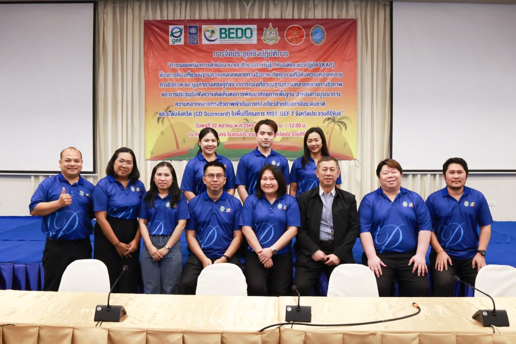 ภายหลังการรายงานผลการสำรวจฯ โครงการได้จัดให้มีการรับฟังความคิดเห็นต่อการสำรวจการรับรู้ ทัศนคติ และแนวปฏิบัติ (KAP) ด้านการท่องเที่ยวบนฐานความหลากหลายทางชีวภาพ ภัยคุกคามที่มีต่อ ความหลากหลายทางชีวภาพ และมูลค่าทางเศรษฐกิจจากการท่องเที่ยวบนฐานความหลากหลายทางชีวภาพ ในพื้นที่โครงการ MBT-GEF 7 จังหวัดประจวบคีรีขันธ์ รวมถึงการรับฟังความคิดเห็นต่อการพัฒนาศักยภาพพื้นฐานสำหรับการบูรณาการ ความหลากหลายทางชีวภาพเข้ากับการท่องเที่ยวสำหรับสถาบันระดับชาติ และ ระดับจังหวัด (CD Scorecard) ในพื้นที่โครงการ MBT-GEF 7 จังหวัดประจวบคีรีขันธ์ดำเนินรายการโดย ดร.ณัฐพล แย้มฉิม มหาวิทยาลัยสวนดุสิต