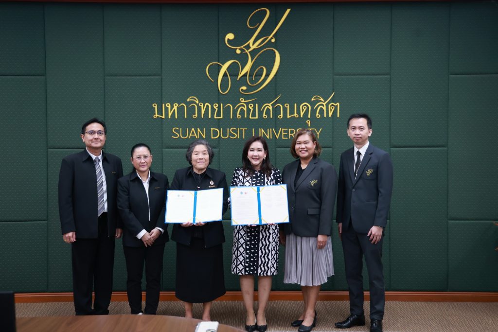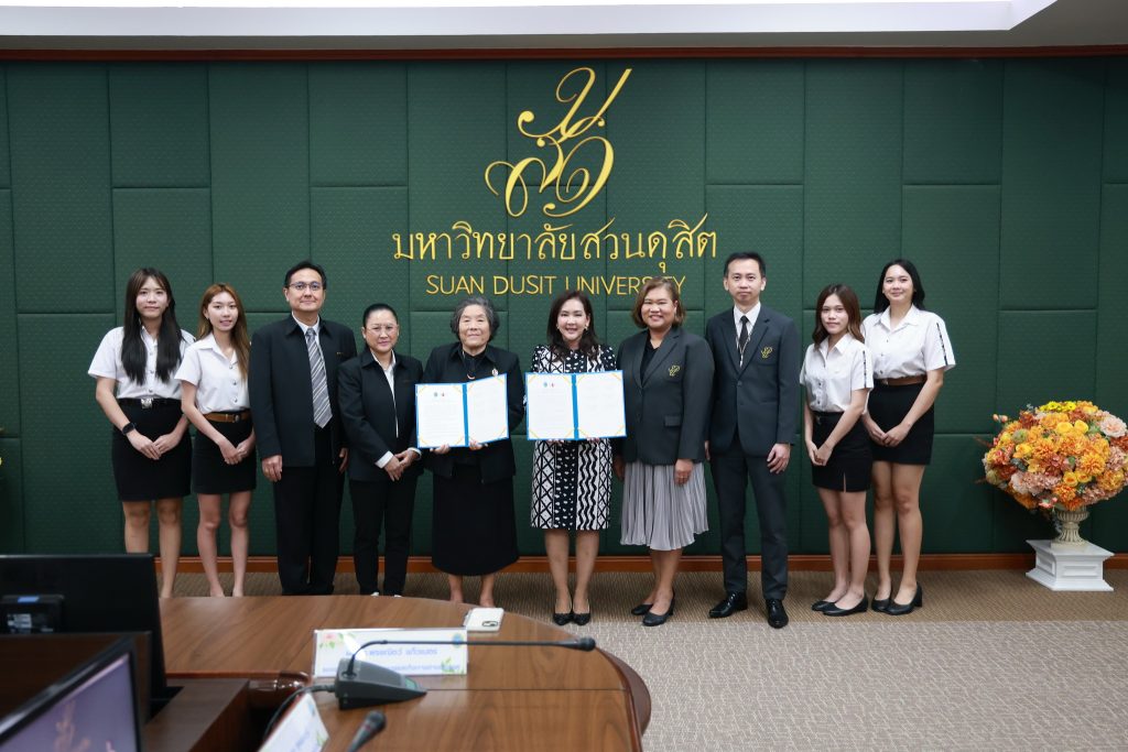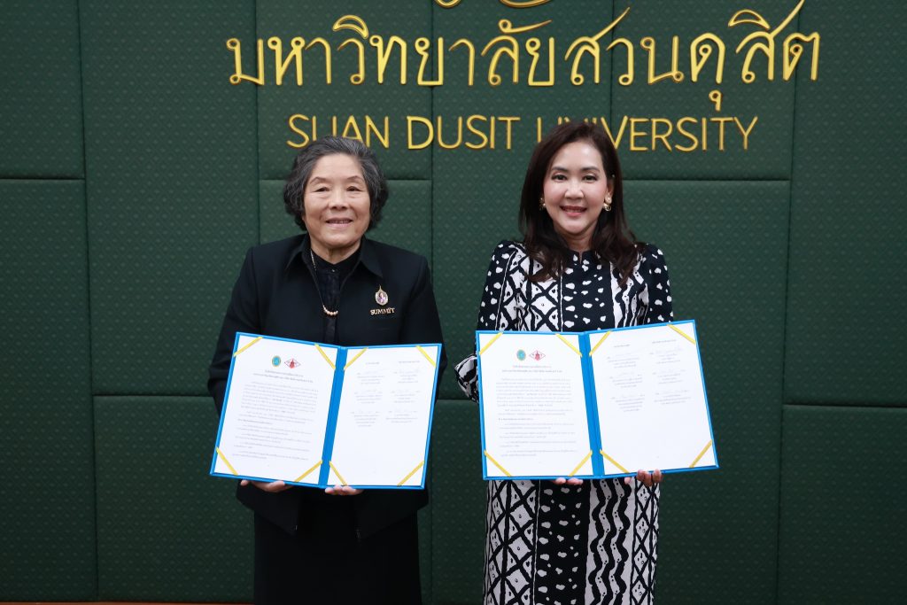 ผู้ช่วยศาสตราจารย์ ดร.พรชณิตว์ แก้วเนตร รองอธิการบดีฝ่ายวิชาการและกิจการต่างประเทศ เป็นประธานพิธีลงนามบันทึกความร่วมมือ (MOU) ว่าด้วยความร่วมมือส่งเสริมการพัฒนาคุณภาพการปฎิบัติงาน ความรู้และทักษะ ของบุคลากร ระหว่าง มหาวิทยาลัยสวนดุสิต กับบริษัท ซัมมิท คอมพิวเตอร์ จำกัด โดยมี ผู้ช่วยศาสตราจารย์ ดร.ฐิตินาถ สุคนเขตร์ คณบดีคณะวิทยาศาสตร์และเทคโนโลยี กล่าวถึงวัตถุประสงค์ในการจัดทำบันทึกข้อตกลงความร่วมมือในครั้งนี้ณ ห้องประชุมลำพอง 2 วันที่ 13 พฤศจิกายน 2568