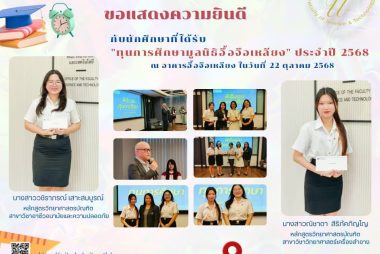 คณะวิทยาศาสตร์และเทคโนโลยี มหาวิทยาลัยสวนดุสิต นำนักศึกษา”เข้ารับเข้ารับทุนการศึกษามูลนิธิอื้อจือเหลียง” ประจำปี 2568